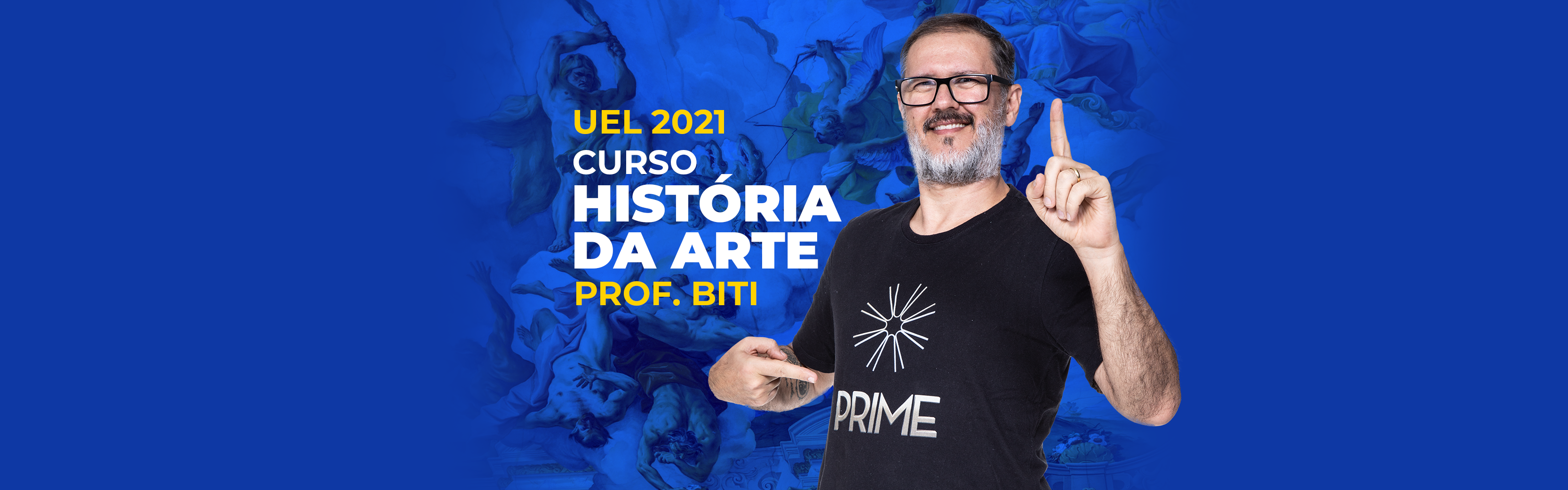 Já pensou em gabaritar a prova de Artes no vestibular 2021 da UEL? Essa é a proposta do curso exclusivo de História da Arte que o professor Biti, do curso Prime, oferece na modalidade online nos dias 1,2, 8 e 9 de março de 2021. O curso já é uma tradição entre os vestibulandos de Londrina e agora poderá ser feito por estudantes de todo o Brasil. Biti é uma referência na preparação de estudantes para vestibulares de alto desempenho, como medicina, e traz no currículo muitas histórias de vestibulandos que gabaritaram a prova!